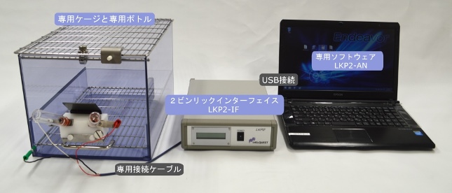 【ケージ】 型式:LKP2-MC(マウス用) LKP2-RC(ラット用) 寸法:マウス用 165(w)×250(d)×190(h)mm ラット用 275 (w) × 390 (d) × 240(h)mm 構成:ケージ本体、トレイ(床網含む)、シャッタプレート リックセンサーブロック:専用ボトル2本(15cc)、汎用ボトル(250cc) にも対応 【2ビンリックインターフェイス】 型式:LKP-IF ケージ接続台数:1ケージに1台 データ:設定時間毎のリック累積回数、リック行動回数、リック行動継続時間、リック行動間インターバル時間(リックとは、1回の舐める行動。リック行動とは一連の飲水行動) PC接続I/F:USB レコーダ用出力:リックセンサ出力波形 0-5v BNC端子 電源:AC100V 50/60Hz 外寸:210(w)x 280(d)x 70(h) mm 【ソフトウェア】 型式:LKP2-AN 左右2ビンへのそれぞれのアクセス回数・状況を記録表示 測定時間:10秒~最長24時間まで リック数カウント:1秒から15分まで設定可能