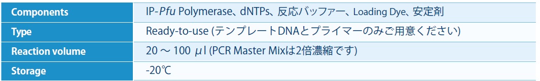 LaboPass™ IP-Pfu PCR Premix は、IP-Pfu DNA Polymerase、dNTP、MgCl₂、反応バッファー、Loading Dye、安定剤を含む最適化された 2X PCR マスターミックスで、thin-wall 8-strip PCR tubeに分注されています。この分注済プレミックスにより、PCR セットアップが簡素化されます。お客様は、テンプレートDNA、プライマー、DW を追加するだけでPCR反応を開始でき、電気泳動用の Loading Dye が添加済みであるため反応終了後直ちに電気泳動できます。