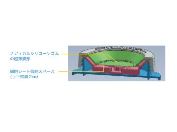 気泡ゼロ ・培養液で容器を満たし、気泡を一切入れずキャップができる。だから、中で細胞が揺れません。 ・柔らかいシリコーンゴムで収容サンプルをやさしく繊細に挟持。 ・キャップのメディカルシリコーンゴム薄膜はCO2を透過します。