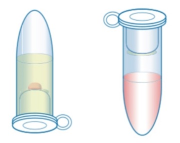 切り出されたサンプルはキャップ上で視認出来ます。 チューブにLysisバッファーを追加することで、次の実験ステップに進めます。
